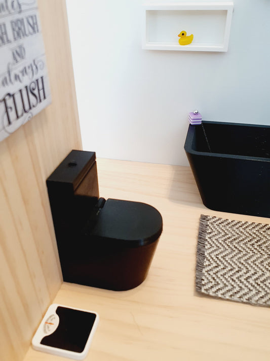 Dolls House Black Modern Toilet With Working Hinged Toilet Lid, 12th Scale, Miniature Toilet, Miniature Bathroom