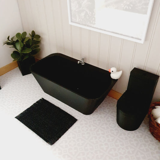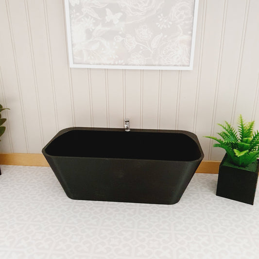 Dolls House Modern Black Bath with chrome tap, 1:12th Scale, Miniature Freestanding bath (BATH3)