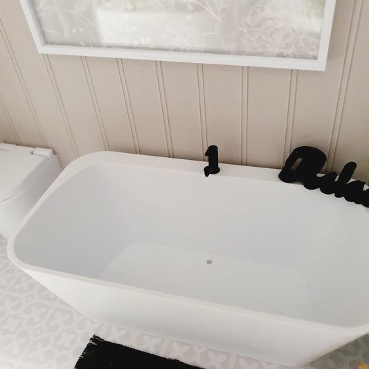 Dolls House Modern White Bath with black tap, 1:12th Scale, Miniature Freestanding bath (BATH3)