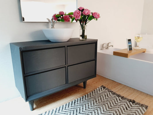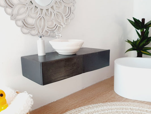 Dolls House Modern Black or Dark Grey Bathroom Vanity with White Round or Square Sink with Silver Tap 1:12th Scale, Miniature (FVA-2)