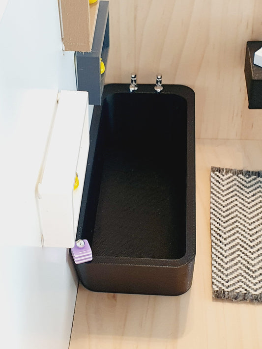Dolls House Modern Black Bath with chrome taps, 1:12th Scale, Miniature bath