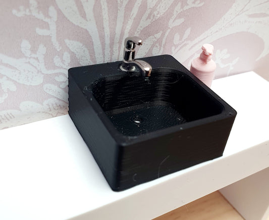 Dolls House Modern Square or Round Sink with Chrome Tap, ** SINK ONLY ** Different Colours Available, 1:12 Scale, Miniature Sink