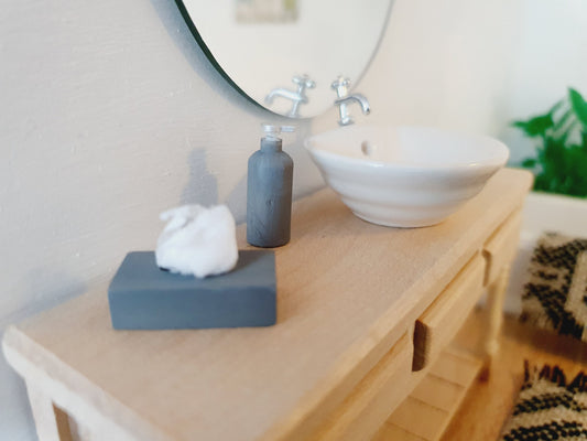 Dolls House Modern Bathroom Set Soap Pump & Tissue Box, 1:12th Scale, Miniature, Choice of Colours