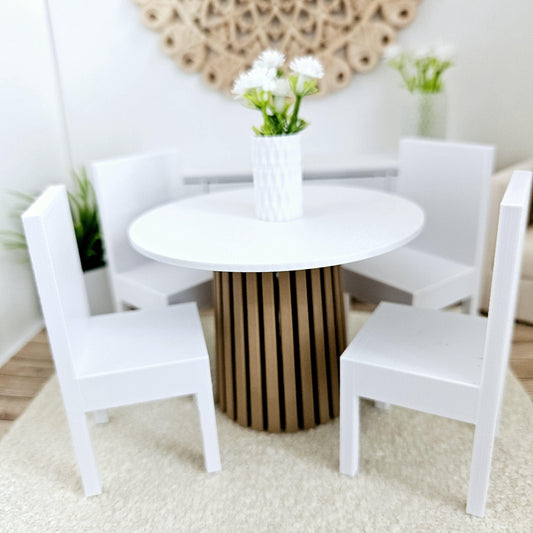 Dolls House Modern Round Dining Table and 4x Chairs, 12th Scale, Miniature Table