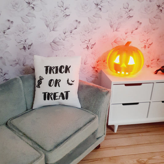 Dolls house 1x Halloween Trick or Treat Cushion, 12th scale cushions, miniature cushion, Halloween