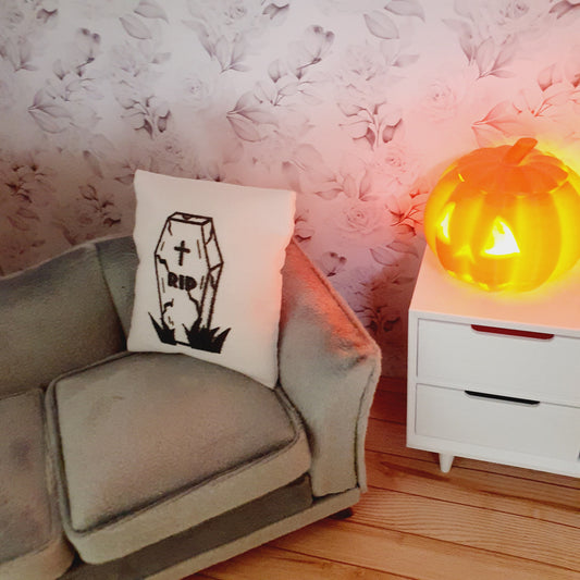 Dolls house 1x Halloween coffin Cushion, 12th scale cushions, miniature cushion, Halloween