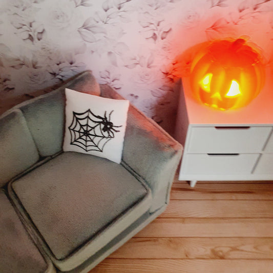 Dolls house 1x Halloween spider's web Cushion, 12th scale cushions, miniature cushion, Halloween, spider