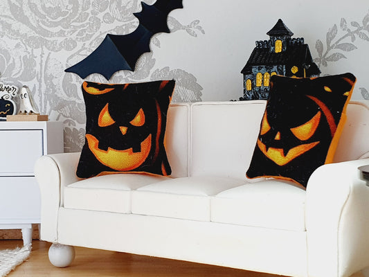 Dolls house 2x Halloween Pumpkin Cushions, 12th scale cushions, miniature cushion, Halloween, Pumpkins