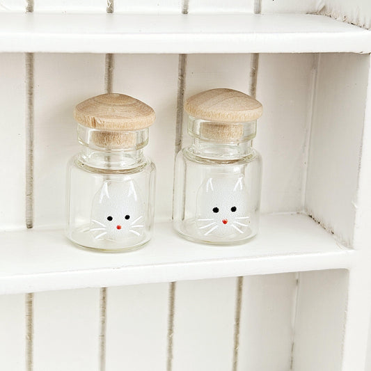 Dolls House White Cat Jars, Set of 2, jars with lids, 12th scale, miniature jar/ vase