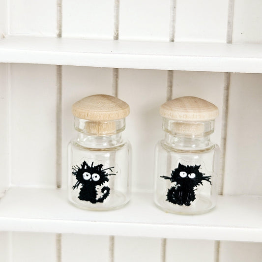 Dolls House Black Cat Jars, Set of 2, jars with lids, 12th scale, miniature jar/ vase