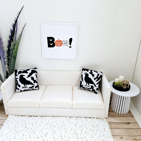 Dolls house 2x Halloween Crow Cushions, 12th scale cushions, miniature cushion, Halloween, Crows