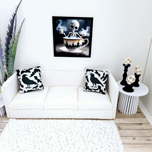 Dolls House Modern Framed Wall Art, Halloween skeleton print, 12th scale, miniature wall picture for any room