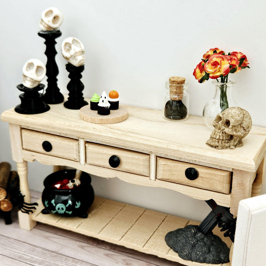 Dolls House Halloween Wooden Dresser with 3 opening drawers and accessories, 1:12th Scale, Miniature Halloween Dresser