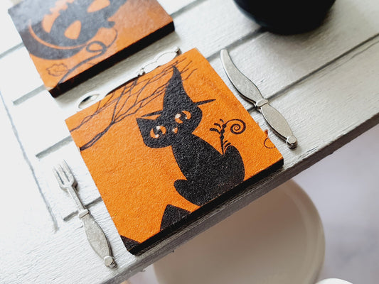 Dolls House Halloween wooden place mats, Set of 4, 1:12th Scale, Dollhouse Place Mats, Miniature