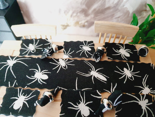 Dolls House Halloween Spider Table Place Setting Set, Table Runner, Place Mats & Napkins, Set of 6, Miniature Table Place, 1:12