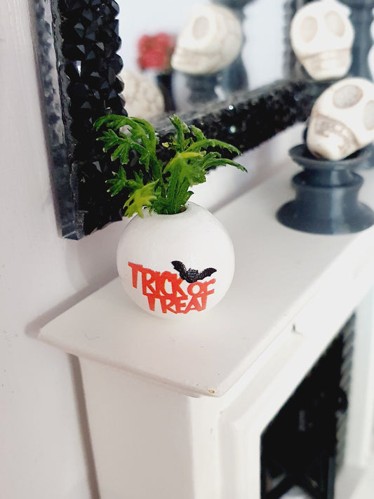 Dolls House Halloween Plant Pot with Plant 1:12th Scale, Miniature, Halloween