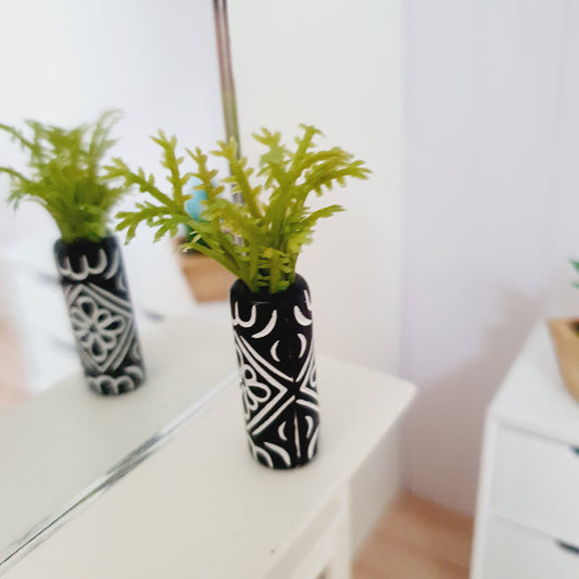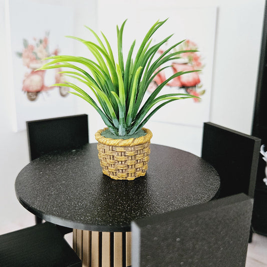 Dolls House Black Plant Pot with Green Plant 1:12th Scale, Miniature