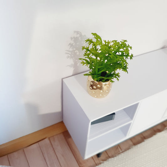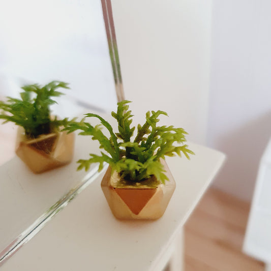 Dolls House Gold Plant Pot with Green Plant 1:12th Scale, Miniature