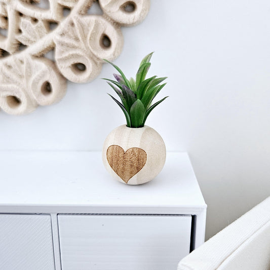 Dolls House Lovely Wooden Heart Plant Pot with Plant 1:12th Scale, Miniature Pot