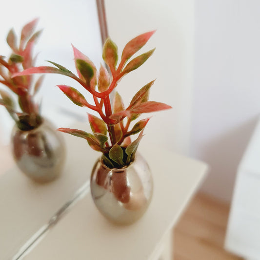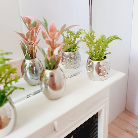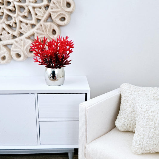Dolls House Silver Plant Pot with Red & Green Plant 1:12th Scale, Miniature