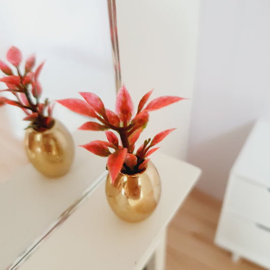 Dolls House Gold Plant Pot with Red Plant 1:12th Scale, Miniature