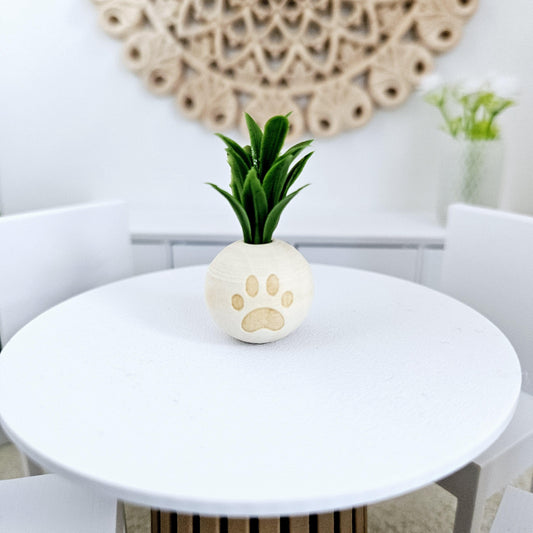 Dolls House Lovely wooden paw print plant pot with plant 1:12th Scale, Miniature Pot