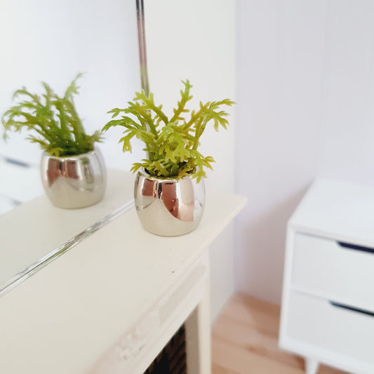 Dolls House Silver Plant Pot with Green Plant 1:12th Scale, Miniature