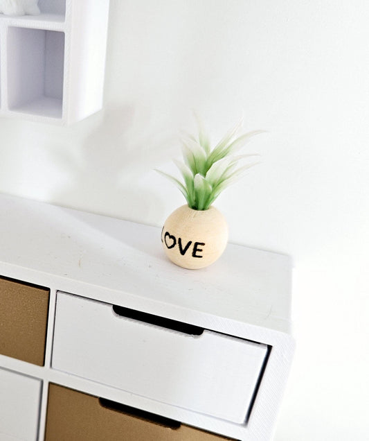 Dolls House Wooden Plant Pot with Plant with the word LOVE, 1:12th Scale, Miniature