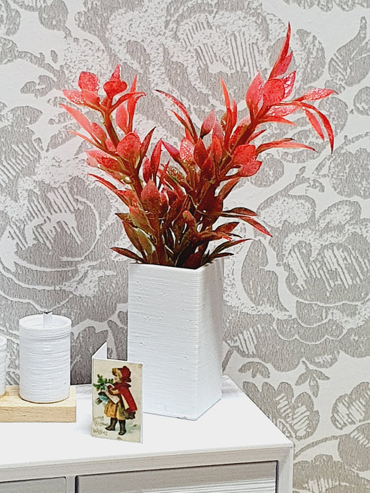 Dolls House Modern Tall Square Vase with Red Leaves, 1:12th Scale, Miniature Plant Pot, Dollhouse Accessories, Choice of Colours