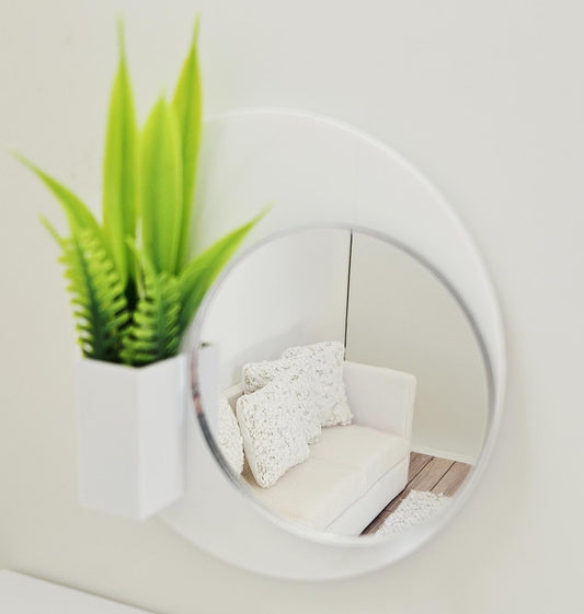 Dolls House Wall Mirror with Planter | Modern Black Or White Acrylic Mirror | 1:12 Scale