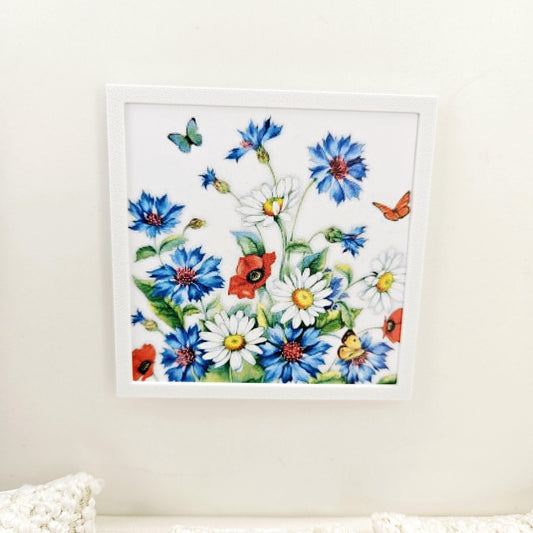 Dolls House Modern Framed Wall Art, Floral picture, 12th scale, miniature wall picture for any room