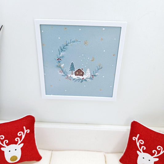 Dolls House Modern Framed Wall Art, Christmas House print, 12th scale, miniature wall picture for any room
