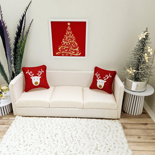 Dolls House Modern Framed Wall Art, Red Christmas Tree print, 12th scale, miniature wall picture for any room
