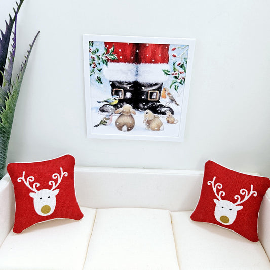 Dolls House Modern Framed Wall Art, Santa's Boots & Friends Print, 12th scale, Miniature Wall Picture For Any Room