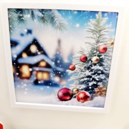 Dolls House Modern Framed Wall Art, Christmas House & Baubles print, 12th scale, miniature wall picture for any room