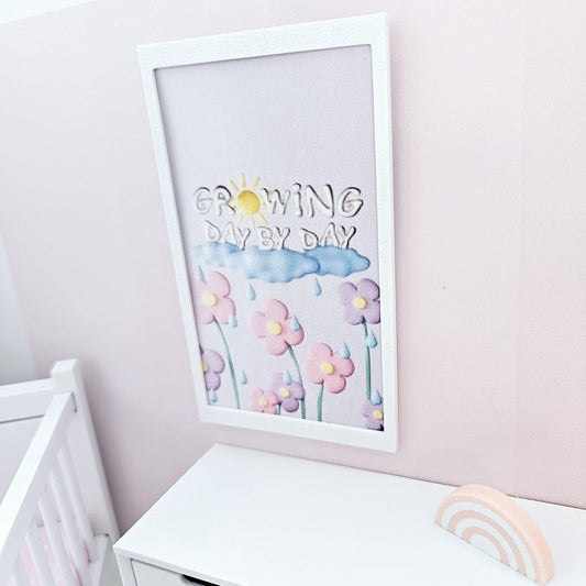 Dolls House Modern Framed Wall Art, Nursery Print. Growing Day By Day, 12th scale, miniature wall picture. Nursery wall art