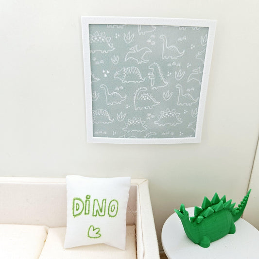 Dolls House Modern Framed Wall Art, Dinosaur picture, 12th scale, miniature wall picture, Nursery wall art