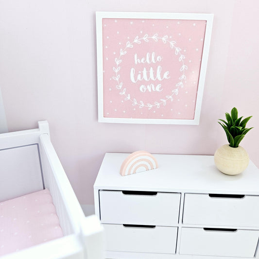 Dolls House Modern Framed Wall Art, Pink, Blue or Green. Hello Little One picture, 12th scale, miniature wall picture. Nursery wall art