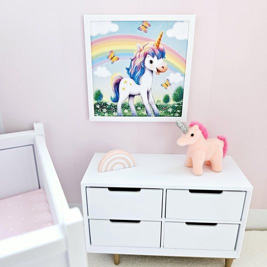 Dolls House Modern Framed Wall Art, Unicorn picture, 12th scale, miniature wall picture, Nursery wall art