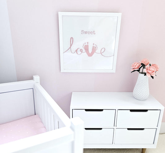 Dolls House Modern Framed Wall Art, Pink baby or Blue love picture, 12th scale, miniature wall picture, Nursery wall art