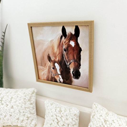Dolls House Modern Framed Wall Art, 2x Horses picture, 12th scale, miniature