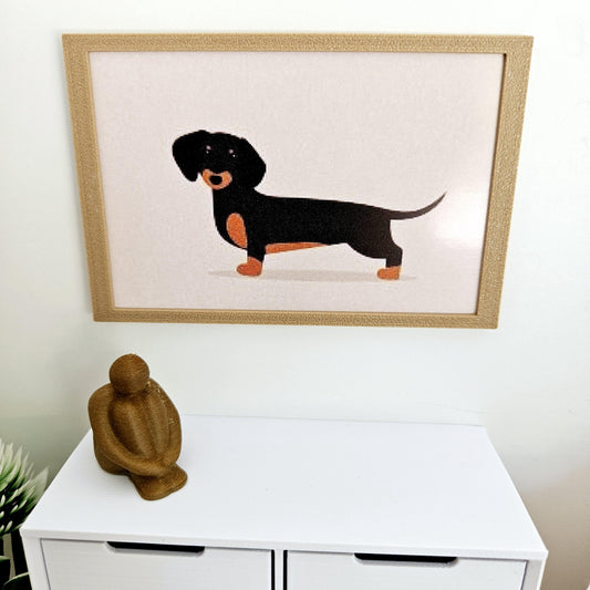 Dolls House Modern Framed Wall Art, Sausage Dog/Dachshund print, 12th scale, miniature wall picture for any room