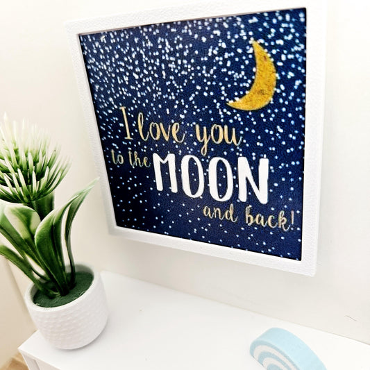 Dolls House Modern Framed Wall Art, I Love you to the moon & back picture, 12th scale, miniature wall picture, Nursery wall art