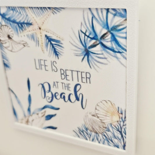 Dolls House Modern Framed Wall Art, Life is better at the beach picture, 12th scale, miniature wall picture for any room