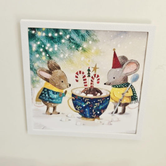 Dolls House Christmas Wall Art | Framed Mice Print | 1:12 Scale Miniature Picture