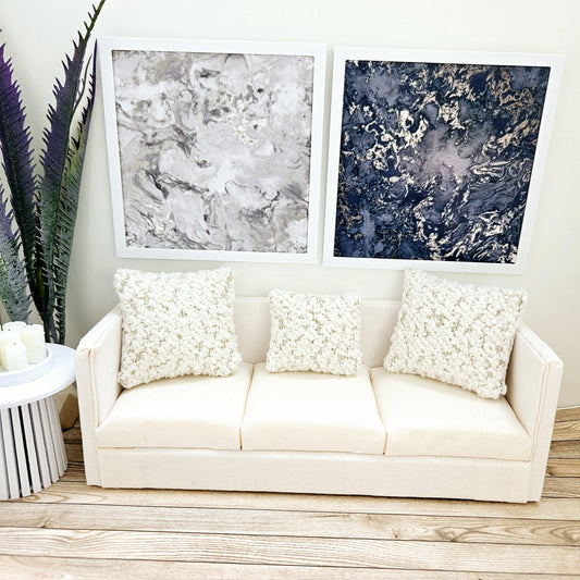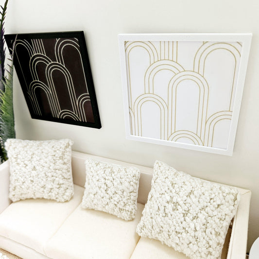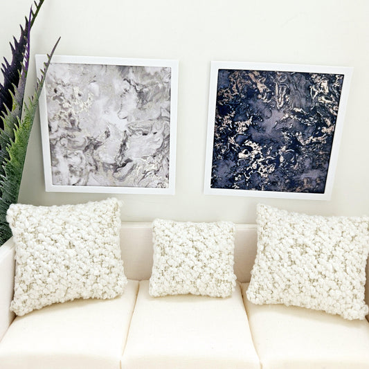 Dolls House Modern Framed Wall Art, Set of 2, Large Abstract art pictures, 12th scale, miniature wall picture for any room
