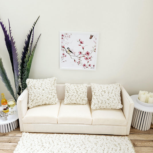 Dolls House Modern Framed Wall Art, Floral & Bird picture, 12th scale, miniature wall picture for any room