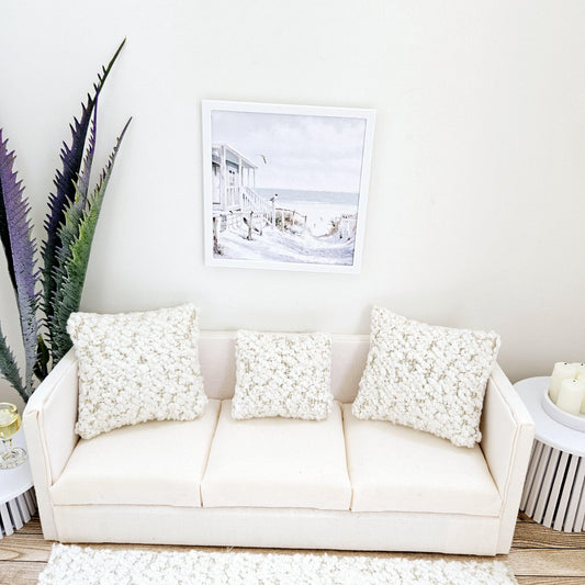 Dolls House Modern Framed Wall Art, Beach Hut picture, 12th scale, miniature wall picture for any room