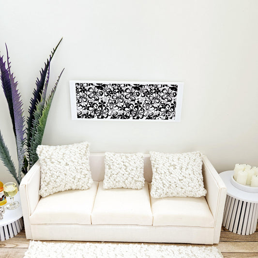 Dolls House Modern Framed Wall Art, Black Flower picture, 12th scale, miniature wall picture for any room