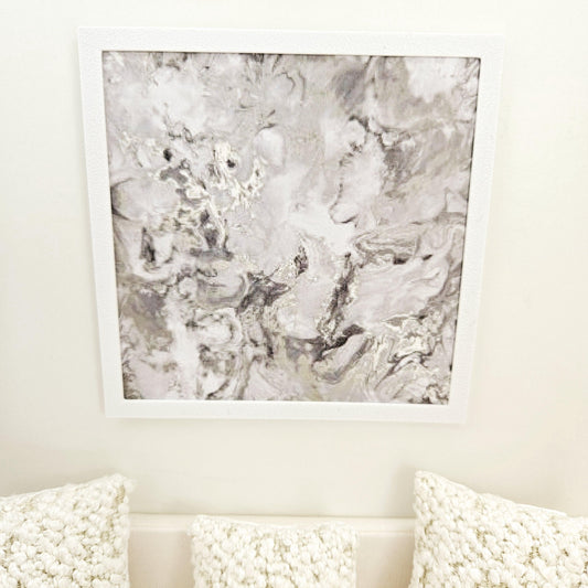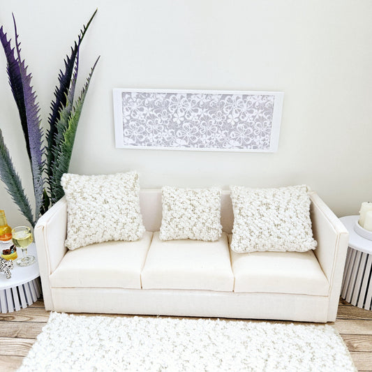 Dolls House Modern Framed Wall Art, Light Grey Flower picture, 12th scale, miniature wall picture for any room